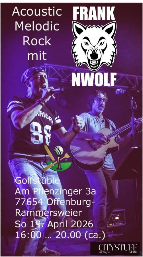 Am Sonntag, den 19. April, feiern wir ab 13 Uhr - und ab 16 Uhr heißt es dann: FRANKNWOLF rockt den GOLF!